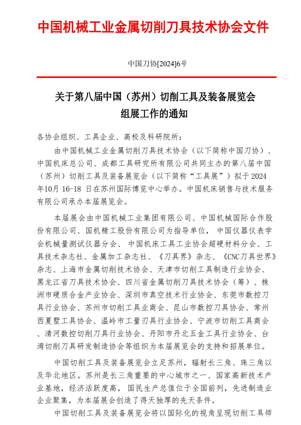 关于2024第八届中国(苏州)切削工具及装备展览会组展工作的通知.pdf 文件大小:298.25 KB