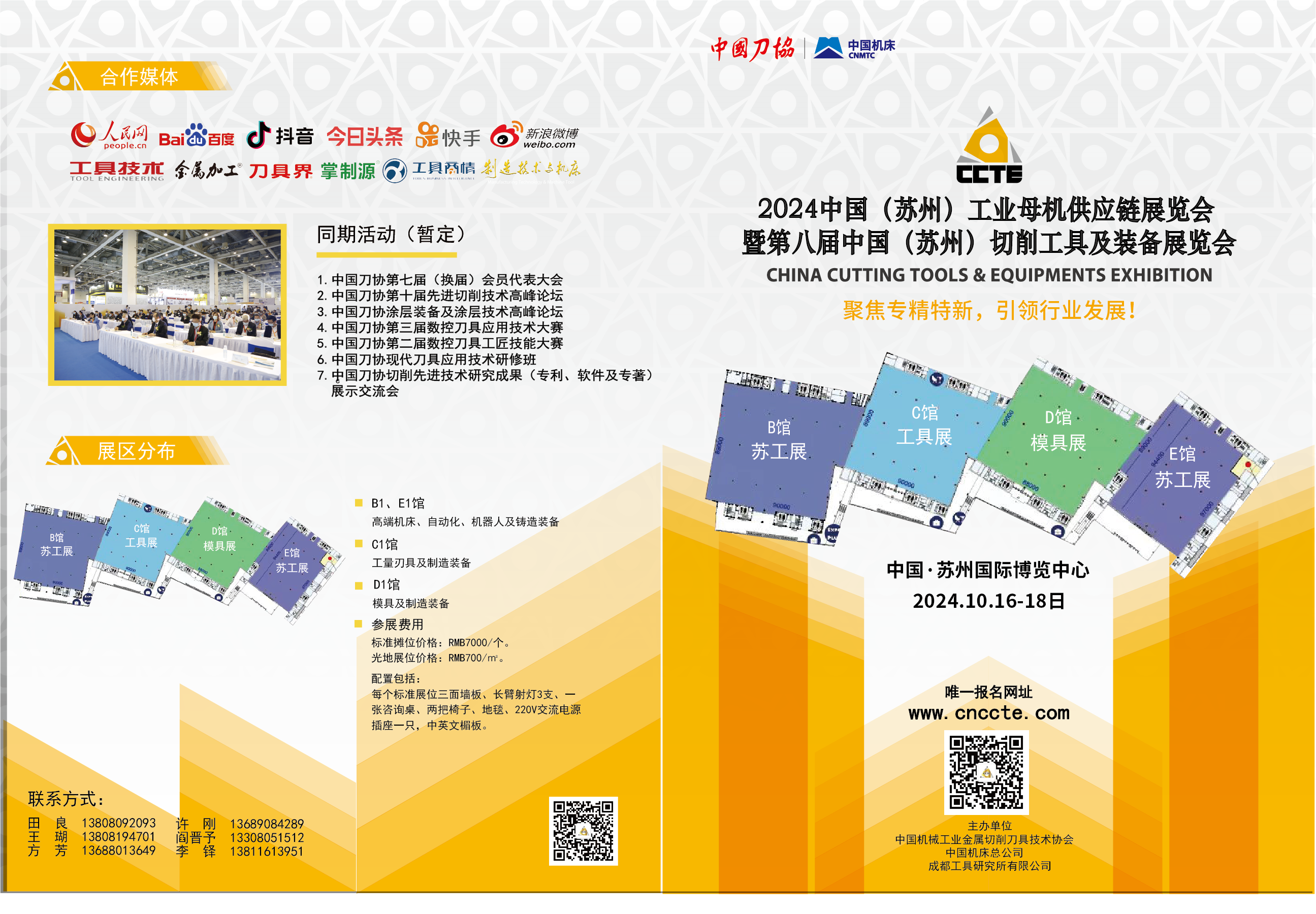 本次切削工具展(C1馆)与苏州国际工业智造展览会(苏工展B1、E1馆)和中国(苏州)模具及装备展览会(模具展D1馆)联合办展,统一宣展、统一开展,共同打造一场机械工业的行业盛会!